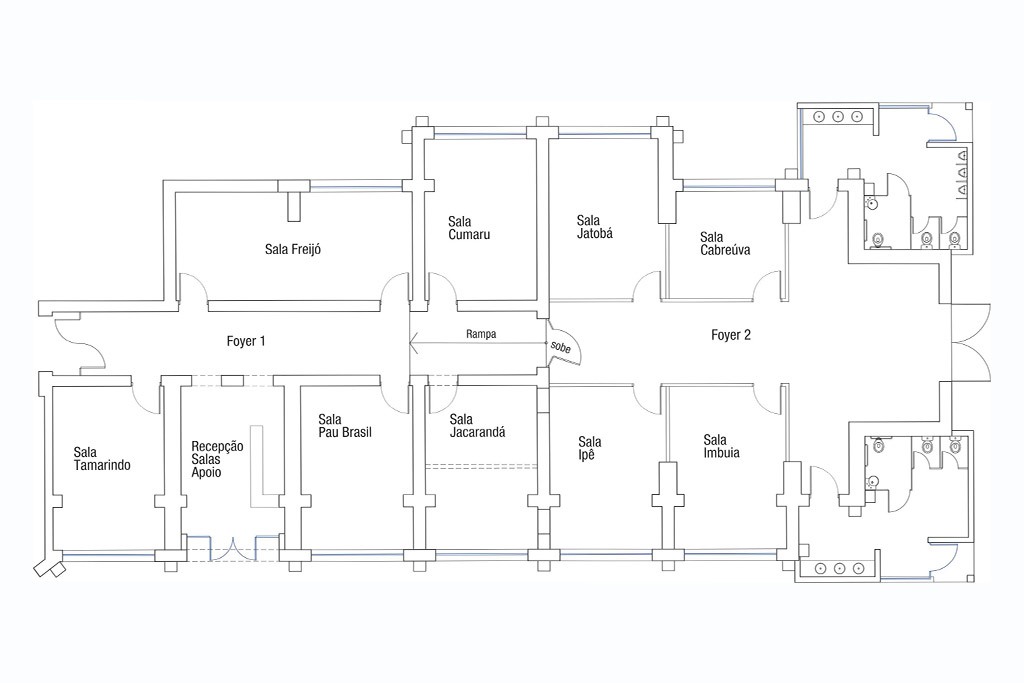 9 salas com capacidade de 16 à 32 pessoas em auditório dependendo da sala escolhida.
